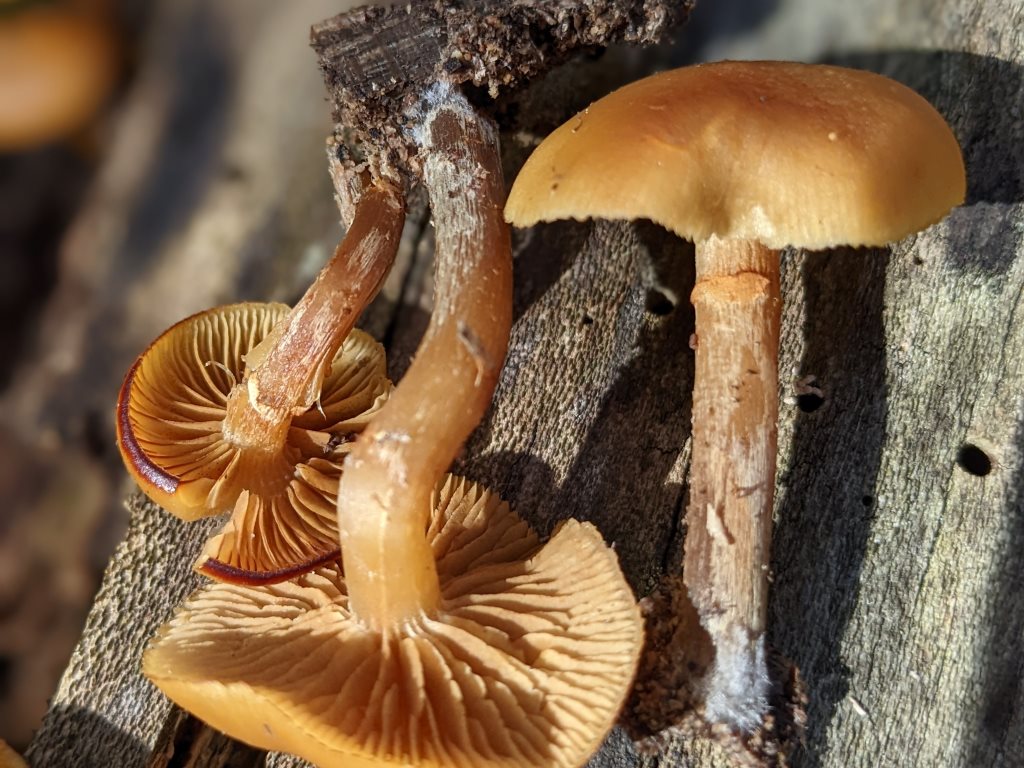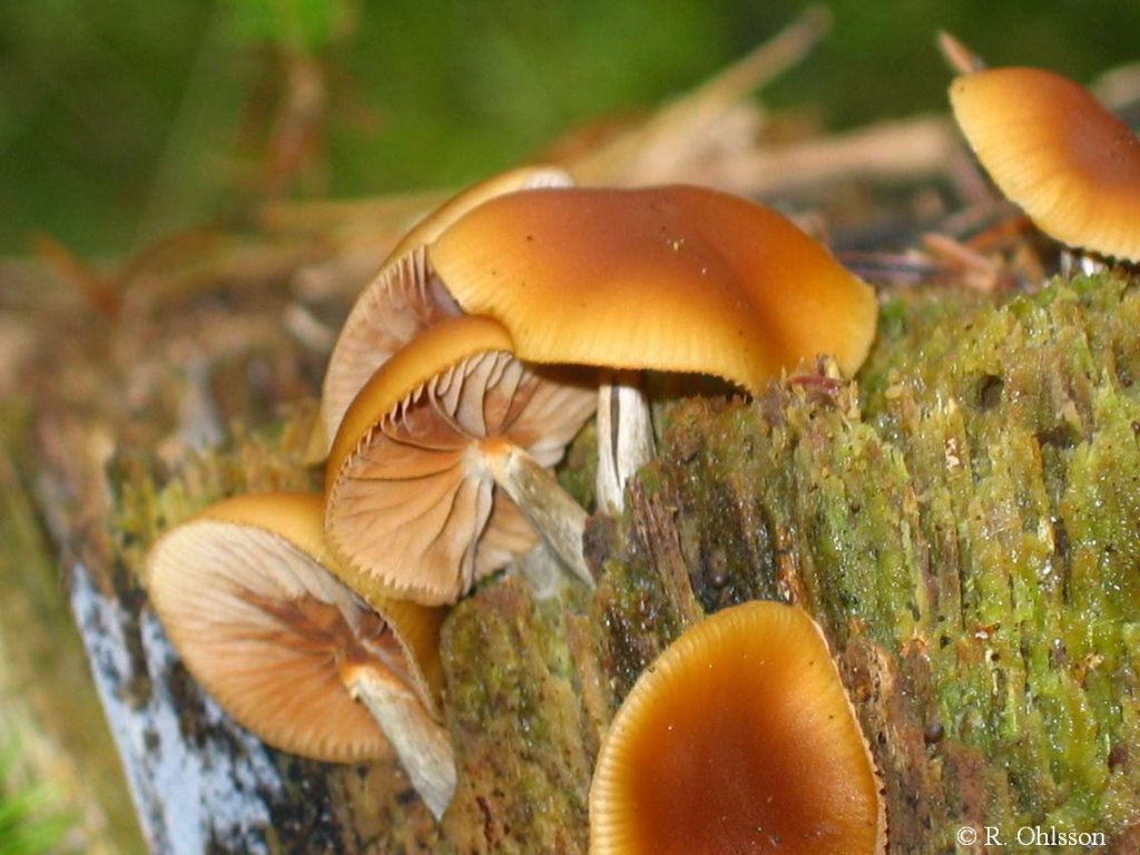 Hatten är hos unga exemplar klockformad till välvd, senare mer utbredd och ofta med en svag puckel i mitten. Färgen är gulbrun, men blir ljusare brungul vid torka. Hattytan är ofta något klibbig i fuktigt väder och mer matt när den torkar. Skivorna är vidväxta till svagt nedlöpande på stammen. De är blekt bruna som unga och blir mer gulbruna vid mognad. Stammen är ungefär jämntjock eller svagt förtjockad nedåt. Den är först massiv (solid) men blir med tiden ihålig nerifrån och upp. En tunn, membranös ring sitter på den övre halvan av stammen, nära hatten. Ringen kan dock vara otydlig och faller ofta av hos äldre fruktkroppar. Hela stammen är täckt av tunna, längsgående vita fibrer som lätt nöts bort vid tumning.