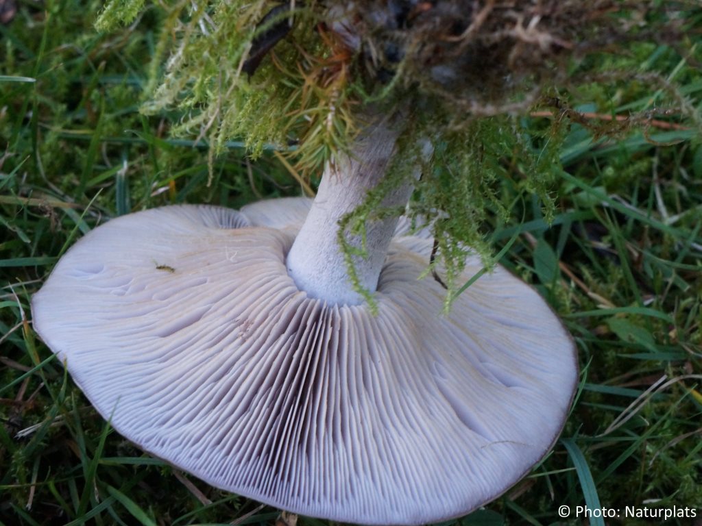 Hatten blir cirka 9–15 cm bred. Den är som ung brunlila eller blålila, småningom mer brunviolett och kan med tiden blekna ytterligare. Formen är först välvd, senare mer utbredd och ibland svagt nedsänkt i mitten. Ytan är slät och kan vara något fet eller blank i fuktigt väder. Skivorna är täta, något urnupna till svagt nedlöpande och som unga starkt blåvioletta. Med tiden får de en ljusare brunviolett ton. Sporerna är ljusa i sporfärg. Foten är 5–10 cm lång och 1,5–2,5 cm tjock, köttig och ofta något klubbformad. Grundfärgen är lik hattens, men ytan är ofta ljusare, vitaktig och fint sidentrådig. Doften är mild men sägs ibland svagt påminna om bränt gummi eller parfym.