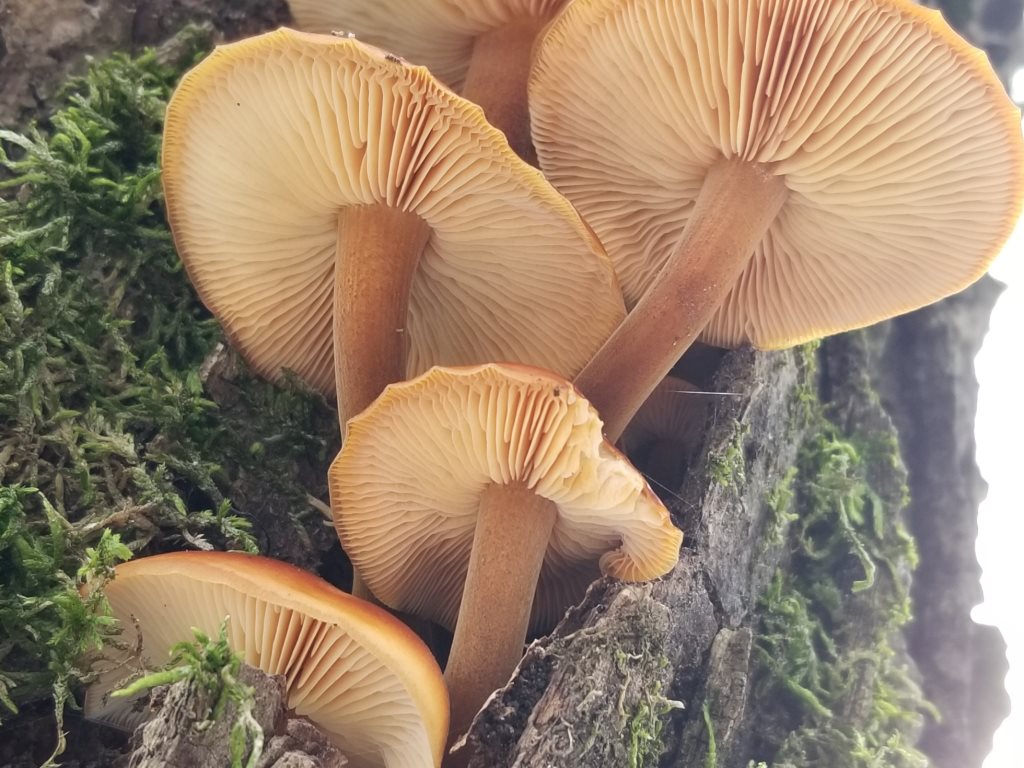 Vinterskivling (Flammulina velutipes) växer på stubbar, stockar och levande lövträd sent på hösten och kan ofta hittas långt in på vintern under milda perioder. Den uppträder i täta knippen och är en seg, köttig liten svamp. Arten räknas som matsvamp men kräver säker artbestämning.