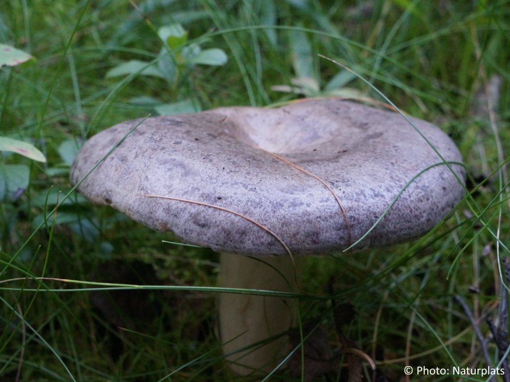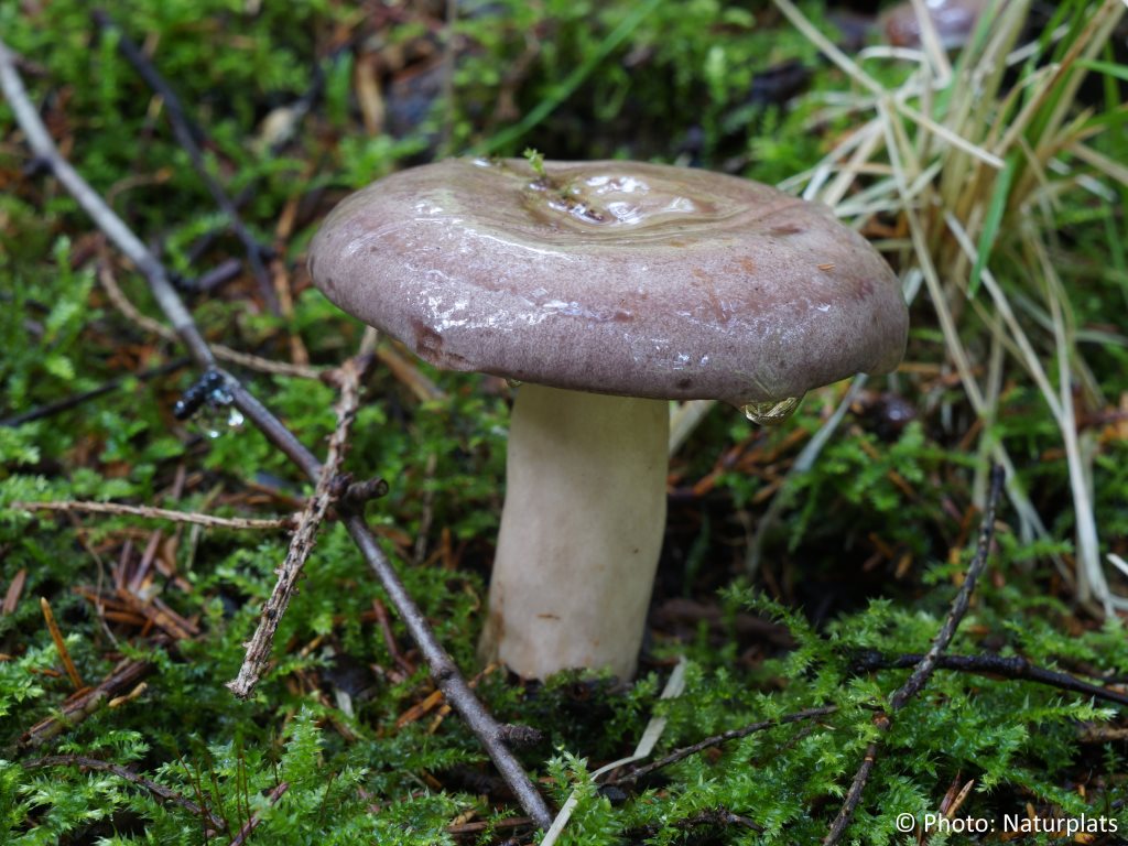 Hatten är 5–15 cm bred, först tydligt violett, senare mer violettgrå och med tiden bleknande. I vått väder är hattens yta mycket slemmig, medan den i torrt väder bara känns klibbig. Ytan är kal och ofta svagt zonerad med mörkare, koncentriska fläckar eller band; hos äldre exemplar kan zonerna nästan försvinna. Skivorna är bleka, nästan vita, tämligen täta och svagt nedlöpande eller vidfästa mot foten. Foten är 6–12 cm lång och 1–2 cm tjock, ihålig och har ungefär samma ljusa färg som skivorna. Formen är mer eller mindre cylindrisk, ibland svagt avsmalnande mot basen.