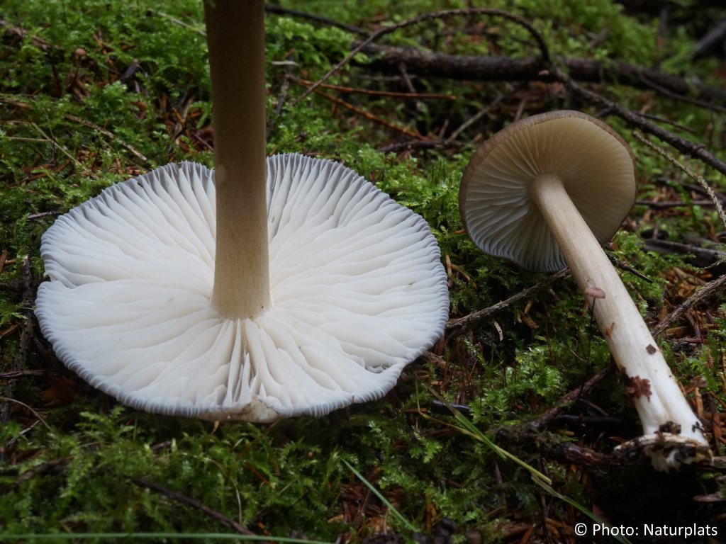 Hatten är 4–10 cm i diameter, först halvsfärisk men blir med åldern mer utbredd med svagt insjunken mitt och ibland en liten bula i centrum. Färgen är mörkgråbrun med en svag ockraton och ytan kan vara svagt radiärt strimmig. Hattkanten är ofta något söndertrasad hos äldre exemplar. Skivorna är mycket breda, gräddvita till vitaktiga och sitter tätt. De är vidfästa till svagt nedlöpande på foten. Sporavtrycket är vitt. Foten är 3–5 cm lång och 1–1,3 cm tjock, mer eller mindre cylindrisk och vitaktig till ljust brun, ofta något ljusare än hatten. Köttet är vitt, ganska fast i hatten men segare i foten. Smaken är tydligt bitter, medan lukten är svag och utan särskilt utmärkande karaktär.