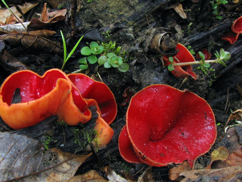 Scharlakansröd vårskål (Sarcoscypha austriaca) hör till ett artkomplex med tre mycket snarlika arter – S. austriaca, S. jurana och S. coccinea – som bara säkert kan skiljas åt i mikroskop. Den växer på delvis nedgrävda kvistar och grenar av lövträd, ofta på fuktiga marker, och påträffas främst i södra Sverige men också längs älvdalar upp i Västerbotten. Svampen har inget egentligt matvärde, men är en iögonfallande och uppskattad vårsignal.
