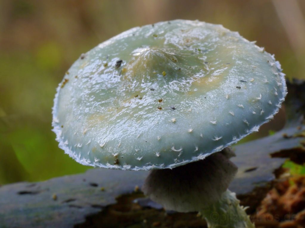 Hatten är 2–8 cm i diameter, först tydligt konvex men breder ut sig med tiden och behåller då ofta en liten topp i mitten. Färgen är från början mörkblå till djupt blågrön och hatten är då mycket slemmig, med vita slöjrester (små flagor) särskilt runt hattkanten. Med åldern bleknar färgen och kan bli mer gulgrön eller nästan helt utan blågrön ton. Skivorna är först vitaktiga, men blir efter hand lerbruna till brunvioletta när sporerna mognar. De kan ibland ha en ljus, nästan vit kant. Stammen är relativt lång och ungefär jämntjock. Den har en ömtålig brun- till svartaktig ring en bit under hatten. Under ringen är stammen täckt av fina, vita fjäll eller flingor från slöjan, medan den ovanför ringen är mer slät. Köttet är mjukt, vitt eller svagt blågrönt och utan särskilt framträdande lukt eller smak.