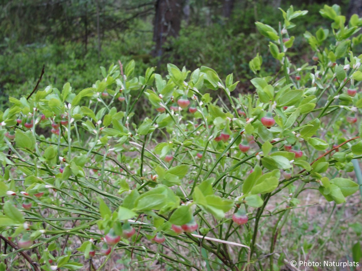 Blåbär är en låg, flerårig risväxt i ljungväxterna som är mycket vanlig i Sverige och Finland. Den växer främst i barr- och blandskog, ofta på sur och näringsfattig mark, men kan också hittas på hedar och i fjällnära björkskog. Blåbärsris blir oftast 10–40 cm högt och har gröna, kantiga stjälkar med tunna, äggrunda blad som fälls på hösten. Den blommar under våren och försommaren med små, hängande klockformade blommor som är vitgröna till svagt rosa. Bären mognar under sommaren till hösten och är mörkblå med blådagg, och till skillnad från amerikanska blåbär färgar de ofta både händer och mun blå-lila. Blåbär är viktiga för många skogslevande djur och används flitigt av människor i sylt, pajer, soppor och som färska bär.